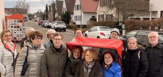 Zum „Antrittsbesuch“ der Rikscha trafen sich die Mitarbeiterinnen der Kleiderkammer, Fachgebietsleiterin Jutta Ottilinger von der Gemeindeverwaltung und Simone Kraußer, Andreas Buschbacher, Petra Wölm und Monika Werra vom Vorstand der CDU-Altenhilfe e. V. Vor der Kleiderkammer bedankte sich der Verein noch einmal für die schöne Spende, die geholfen hat, die Rikscha zu kaufen. Zuerst wurde die Rikscha genau in Augenschein genommen und ausprobiert. Es sitzt sich gut auf der Bank. Sogar drei Damen fanden Platz.