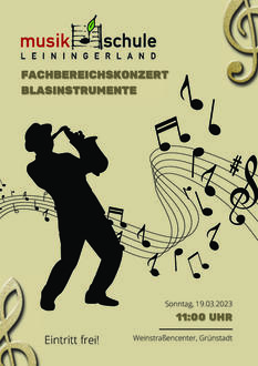 Zunächst stellen sich die Bläser in einer Matinee um 11:00 Uhr vor, in der sowohl Holz- als auch Blechblasinstrumente erklingen werden. Dabei werden junge Musikschüler als Solisten und in Ensembles ihr Können auf Blockflöte, Querflöte, Klarinette, Saxophon, Trompete, Posaune und Horn zeigen. Erwachsene Schüler, die in Musikschul-Ensembles wie der Big Band oder der „Patchwork- Family“ aktiv sind, werden dabei unterstützend mitwirken. Der musikalische Bogen spannt sich von Folklore über Barock und Klassik bis hin zu Jazz und Rock.
