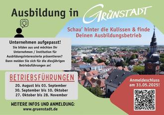 Im Oktober 2024 wurden erstmals von Grünstadter Unternehmen und Institutionen die Pforten für interessierte Ausbildungssuchenden geöffnet um diesen die Gelegenheit zu bieten, ihren möglichen Wunschberuf näher kennenzulernen. In den 90 Minuten wurden den Teilnehmern alles Wissenswerte über den Betrieb sowie über die Ausbildungsberufe vermittelt. Weiterhin konnten die Teilnehmer ihre Fragen stellen, sich mit Auszubildenden austauschen und/oder sogar selber Hand anlegen. Insgesamt fanden 9 Betriebsführungen mit 54 Teilnehmer*innen statt.