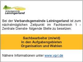 Bei der Verbandsgemeinde Leiningerland ist zum