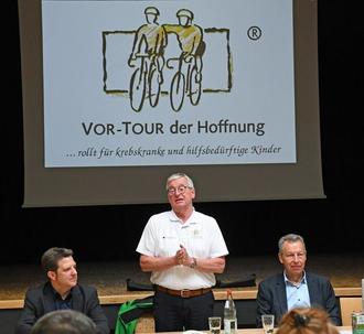 „Die "VOR-TOUR der Hoffnung" lebt vom Einfallsreichtum und vom Engagement all derer, die im Vorfeld der Tour, am Rande der Strecke und in den Etappenzielorten dazu beitragen, die Tour mit kleinen Aktionen und Veranstaltungen zu unterstützen und für den guten Zweck zu spenden“, erläutern die Organisatoren Hans-Josef Bracht und Dieter Saueressig während der Präsentation vor Vertretern aus Gesellschaft, Politik und Vereinen in Grünstadt.