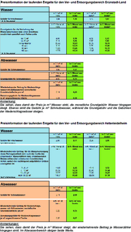 | VG Grünstadt-Land Summe | 163,88 € (Wasser) 308,04 € (Abwasser) 471,92 € | 182,40 € 428,45 € 610,85 € | 18,52 € (11,3 %) 120,41 € (39,09 %) 138,93 € (29,43 %) |