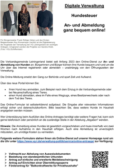 • Ihren Hund neu anmelden, zum Beispiel nach dem Einzug in die Verbandsgemeinde oder