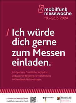 Vom 18. bis 25. Mai 2024 sind alle Bürgerinnen und Bürger in Rheinland-Pfalz dazu aufgerufen, mithilfe der Funkloch-App der Bundesnetzagentur die Netzverfügbarkeit ihrer Mobilfunkanbieter zu erfassen.