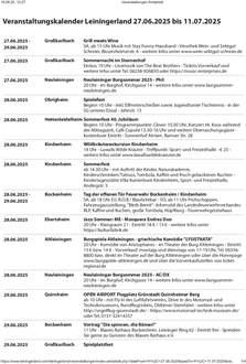 Veranstaltungskalender Leiningerland 27.06.2025 bis 11.07.2025