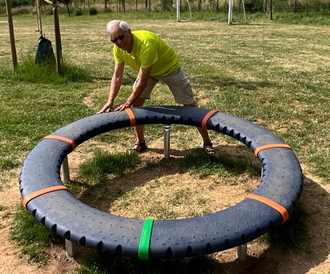 Hans Malsam, Mitglied im Förderverein, hat die Befestigungselemente für den Balancierbalken gebaut und gespendet.
