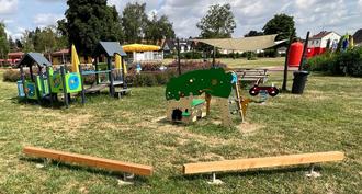 Der Spielplatz im Schwimmbad in Hettenleidelheim ist ein Anziehungspunkt, der zusätzliche Badegäste anlockt. „Wir beobachten viele Familien mit Kindern, die gezielt zu uns nach Hettenleidelheim kommen, da die kleinen Badegäste im Umfeld des Planschbeckens attraktive Spielangebote finden“, sagt Manfred Guth, der Vorsitzende des Fördervereins des Hettenleidelheimer Schwimmbads. In den jüngsten Tagen haben die Helfer des Fördervereins erneut den Spielplatz deutlich aufgewertet. Zum Beginn der Badsaison wurden zwei nagelneue Drehspielgeräte (Supernova und Multispinner) sowie zwei jeweils zwei Meter lange Balancierbalken aus Douglasienholz im Freibad aufgebaut. „Die Kosten knapp betrugen über 13.000 Euro“, berichtet Guth. Die Anstalt des Öffentlichen Rechts zum Betrieb der Freibäder in Altleiningen und Hettenleidelheim (AöR) zahlte das Gerät „Multispinner“ für 7.000 Euro. Der Förderverein finanzierte das zweite Gerät und die übrigen Kosten. Er erhielt dabei Unterstützung durch Familie Kirberg, die sich in Hettenleidelheim niedergelassen hat: 3000 Euro spendete die Familien für die Spielplatzerweiterung.