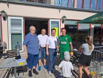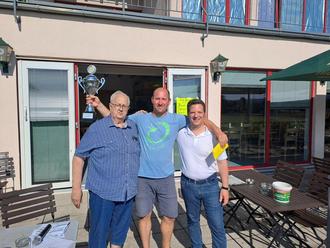 Peter Fruth und Norbert Bölger vom SV Obersülzen übergaben gemeinsam mit Bürgermeister Frank Rüttger die Siegesprämien.