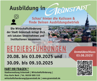 Nach einem erfolgreichen Projektstart im Jahr 2024 mit „Ausbildung in Grünstadt - Schau‘ hinter die Kulissen und finde deinen Ausbildungsbetrieb“ geht es direkt nach den Sommerferien in die nächste Runde.