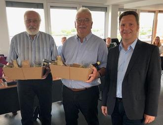 Bürgermeister Frank Rüttger (rechts) verabschiedete die bisherigen Schiedsleute Karlheinz Christ (links) und Kurt Mauntz (Mitte).