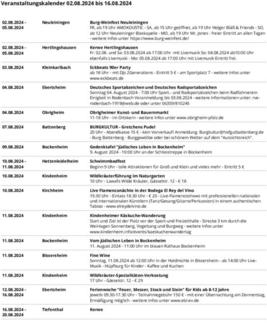 Termine/Veranstaltungskalender 02.-16.08.2024
