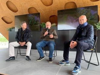 Das Eisbachprojekt zählt zu den bislang 39 ausgezeichneten Grünprojekten in der Metropolregion Rhein-Neckar. Bürgermeister Bernd Findt (Ebertsheim) und Andreas Valentin (Planungsbüro Valentin) informierten im Gespräch mit Claus Peinemann (VRRN) die Besucher im Pavillon über dieses interessante Gewässerprojekt. Es ist ein gelungenes Beispiel wie mit Blick auf Klimaanpassungsstrategien Landschaftsräume umgestaltet werden, um vielfältige Funktionen von Hochwasser- und Starkregenrückhaltung, über Biodiversitätssteigerung bis hin zu landschaftsgebunden Naherholungsmöglichkeiten zu entwickeln. In der Storymap des Metropolatlas werden alle Grünprojekte vorgestellt: https://metropolatlas.digitale-mrn.de/