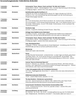 Veranstaltungen, die in den Veranstaltungskalender aufgenommen werden sollen, sowie Änderungen bei bereits gemeldeten Terminen senden Sie bitte rechtzeitig zum Redaktionsschluss donnerstags, 12 Uhr, per E-Mail an