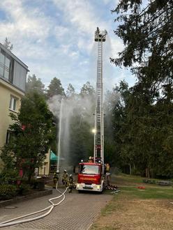 "Die Übung ist insgesamt betrachtet sehr gut abgelaufen und die Feuerwehrkameraden und Kameradinnen haben gute Arbeit geleistet", lautet das Resümee des Wehrleiters der Verbandsgemeinde Leiningerland, Markus Ittel. "Wir üben allerdings auch, um Schwachstellen und Verbesserungspotenziale zu ermitteln. Das ist heute gelungen, wir haben im technischen Bereich das eine oder andere aufgedeckt, was wir verbessern wollen", so Ittel. Er dankte Anna-Maria Klemm, der EInrichtungsleiterin des Landschulheims der Stadt Frankenthal, die in vollem Umfang den Testlauf der Feuerwehr in ihrem Haus unterstützt hatte. Klemm ließ sich sogar selbst aus ihrer Dienstwohnung unterm Dach des Landschulheims "retten". "Der Feuerwehrmann, der mich in den Korb der Drehleiter geholt hat, hat das sehr gut gemacht", lobte sie. Allerdings sei das für sie nicht ganz einfach gewesen, da sie nicht schwindelfrei sei, gestand Klemm ein. "Ich bin froh, dass der Ernstfall wieder einmal bei uns geprobt wird, die vorausgehende Übung in unserem Haus liegt schon einige Jahre zurück", dankte sie für die Initiative von Wehrführer Sven Rinner von der Feuerwehr Carlsberg.