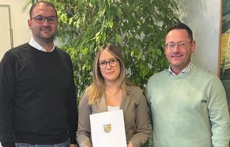 Krauß lobte bei der Übergabe der Ernennungsurkunde das Selbstbewusstsein, das die junge Verwaltungsmitarbeiterin und Teamleiterin für ihre neue Aufgabe mitbringt. Am 19. Februar wird sie ihre erste Trauung im Trauzimmer im Verwaltungssitz in Hettenleidelheim vornehmen, 25 weiter sind bereits für 2026 geplant. Insgesamt geben sich meist mehr als 150 Paare im Jahresverlauf bei der Verbandsgemeinde Leiningerland das Ja-Wort.