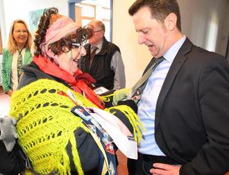 Hier hat Auftritt der närrischen Frauen, die seit 1996 unterwegs sind, ebenfalls Tradition. Auch sie wurden mit einem kleinen Imbiss empfangen. Neben der Krawatte von Bürgermeister Rüttger erbeuteten die Frauen den Binder des Beigeordneten Karl Meister, der in der Verwaltung seinen Amtsgeschäften nachging.