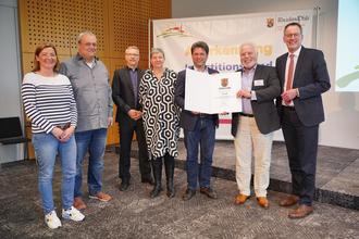 Begleitet von Bad Dürkheims Bürgermeister Christoph Glogger (SPD) war aus Leistadt eine fünfköpfige Delegation zu der Ehrung in Mainz angereist, bei der Ortsvorsteher Axel Günther (FWG - Leistadter Liste) die Urkunde aus den Händen des Ministers entgegennahm und gemeinsam mit Bürgermeister Christoph Glogger in die Kamera hielt. Die mitgereisten vier engagierten Bürger von Leistadt freuten sich für ihre Gemeinschaft und die Chancen, die sich nun ergeben.