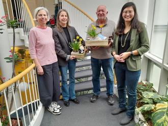 v.l.n.r. Annette Stierl (Stadtverwaltung, im Projekt Fairtrade-Stadt), Steffi Eckfelder, Volker Fleckser und Bürgermeisterin Natalie Bauernschmitt