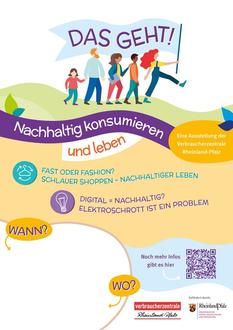 Viele Menschen möchten gerne nachhaltiger konsumieren, um Klima und Umwelt zu schonen. Doch oft fehlen ihnen Informationen, falsche Nachhaltigkeitsversprechen sorgen zusätzlich für Verunsicherung und nicht selten scheint Nachhaltigkeit auch noch teuer zu sein. Die Ausstellung und der ergänzende Vortrag „Das geht! Nachhaltiger konsumieren und leben“ der Verbraucherzentrale Rheinland-Pfalz schaffen da Abhilfe.