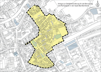 | 2. | Die Kernzone (Innenstadtbereich) wird in der Anlage als gelbe Fläche mit gestrichelter Geltungsbereichsgrenze dargestellt. |