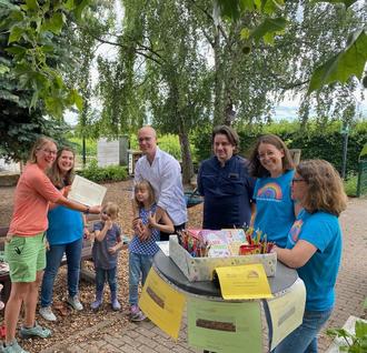 Als kleines Dankeschön überreichten sie dem Team des Winzergartens Malblöcke, Stifte, Bücher und Spiele.