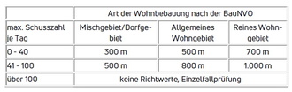 Die Erlaubnis wird erteilt, wenn - abhängig von der Schusshäufigkeit und der Art der Wohnbebauung sowie ggf. unter Berücksichtigung besonderer Geländeverhältnisse - bestimmte Mindestabstände eingehalten werden. Diese wurden auf Landesebene als Richtwerte abgestimmt. Die Gemeindeverwaltung prüft die Erlaubnisfähigkeit anhand der Angaben des Antragstellers.