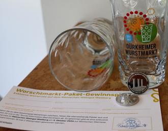 Das Bundle - Worschtmark, Worschtmarkt-Dubbeglas und Losgutschein - ist für 15 Euro in der Tourist-Information Bad Dürkheim erhältlich. Der Verkauf beginnt am 14. August 2024 um 9:30 Uhr.