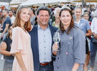 v.l.n.r. ehemalige Dürkheimer Weinprinzessin Lea Baßler, Bürgermeister Christoph Glogger, amtierende Dürkheimer Weinprinzessin Karolin Ott