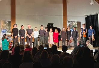 Als einziges Duo des Abends, welches Klavier vierhändig spielte, beeindruckten die Brüder Anton Richard (12) und Robert Rainer Surowy (13) mit Camille Saint-Saëns’ „Die Fossilien“ aus seinem „Karneval der Tiere“. Anschließend präsentierten sie solistische Klavier-Beiträge von Bach und Rachmaninoff, und Robert spielte dazu noch Carl Maria von Webers virtuoses „Concertino“ Es-Dur zusammen mit dem Klarinettisten David Hummel (13).