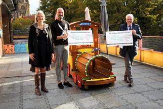 Die VR-Bank hat über die Hermann und Wilhelmine Kaltenhäuser-Stiftung einen Betrag von 10.000 Euro und über die Kurt und Aenne Schwerdt-Stiftung einen weiteren Betrag von 4.000 Euro zur Verfügung gestellt. Mit diesem finanziellen Rückhalt konnte die Kita an der Isenach ein neues Spielgerät für die Dachterrasse in Auftrag geben. Das Spielgerät, eine imposante Holzlokomotive mit mehreren Wagons, wurde in den vergangenen Tagen geliefert und erstrahlt nun als neues Highlight für die Allerkleinsten.