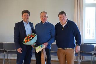 v.l.n.r. Bürgermeister Christoph Glogger, Jubilar Volker Rudy und Dirk Friedrich vom Personalrat