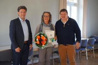 v.l.n.r. Bürgermeister Christoph Glogger, Rosel Bajan und Dirk Friedrich vom Personalrat