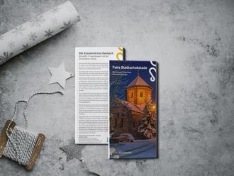 Pünktlich zum Beginn der Adventszeit ist eine besondere Leckerei zurück: Die Winteredition der fairen Stadtschokolade Bad Dürkheim ist in ausgewählten Geschäften wie den Leprima-Biomärkten, dem Weltladen, der Tourist-Information und jetzt auch im Pfalzmuseum zum Preis von 3,50 Euro erhältlich. Die Banderole der diesjährigen Bio-Mandel-Orange-Schokolade zeigt die Klosterkirche Seebach im weihnachtlichen Gewand. Das Thema der Weihnachtsedition lautet „Die Klosterkirche Seebach: Benedikt, Frauenpower und der Dürkheimer König“.