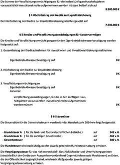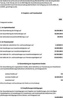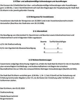 Der Haushaltsplan 2024 liegt zur Einsichtnahme von Freitag, den 02.02.2024 bis einschließlich Montag, den 19.02.2024, während der allgemeinen Öffnungszeiten im Rathaus, Mannheimer Str. 24, Zimmer 1.17, öffentlich aus. Auf Grund der aktuell geltenden Besuchsregelungen im Rathaus bitten wir um vorherige Terminabsprache (Tel.-Nr. 06322/935-1313). Alternativ kann der Haushaltsplan auf der Homepage der Stadt Bad Dürkheim eingesehen werden.