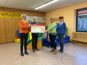 In der evangelischen Kindertagesstätte „Sonnenblume“ nahmen Pfarrer Dr. Frank Biebinger und Max Stapf, Leiter der Einrichtung, den Scheck im Wert von 10.500 Euro entgegen. Auch hier strahlten die Augen aller.
