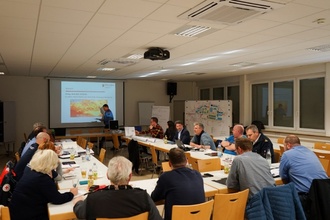 Copyright: Stadtverwaltung Bad Dürkheim | Vertreterinnen und Vertreter der Stadt, der örtlichen Ordnungsbehörde, der Freiwilligen Feuerwehr, der Kreisverwaltung, des DRK Ortsverbandes sowie der Polizei bei einer gemeinsamen Planbesprechung