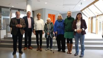 v.l.n.r. Landrat Hans-Ulrich Ihlenfeld, Dirk Michel (Leiter der Kreisvolkshochschule Bad Dürkheim), Angelika Otterbach (Dozentin bei der Geschäftsstelle der KVHS), Brunhilde Reis, Karin Paul, Bettina Meier (Leiterin der Offenen Kreativ-Werkstatt) und Bürgermeisterin Natalie Bauernschmitt