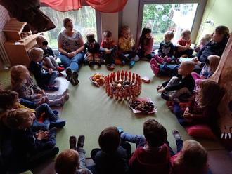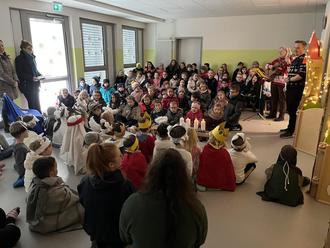 Auch mit den Schülern und Lehrer der „Astrid-Lindgren-Grundschule“ wurde die Weihnachtszeit gemeinsam genossen. Jeden Dienstag sind die Vorschulkinder in die Grundschule gegangen, um am traditionellen Adventstreffen teilzunehmen. Gemeinsam wurden Lieder gesungen oder Geschichten erzählt. Im Kindergarten wieder angekommen, erzählten die Vorschulkinder stolz, was sie in der Schule erlebt haben. Wir freuen uns als Kita sehr, dass die Adventstreffen, in Kooperation mit der Grundschule, nach Corona wieder stattgefunden haben. Ein Dankeschön an alle Schüler und Lehrer.