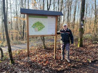 Revierleiter Dieter Gass vor Informationstafel in Nähe der Igelborner Hütte