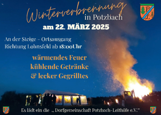 Die Dorfgemeinschaft Potzbach-Leithöfe e.V. lädt am 22.März 2025 zur Winterverbrennung ein.