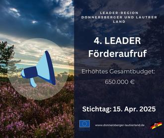 Gute Nachrichten für Projektträgerinnen und Projektträger in der Region: Die LAG Donnersberger und Lautrer Land hat in ihrer Vorstandssitzung am 12.03.2025 das Gesamtbudget für den 4. LEADER-Förderaufruf auf insgesamt 650.000 Euro erhöht! Interessierte öffentliche, private und gemeinnützige Akteure haben noch bis zum 15. April 2025 die Möglichkeit, ihre Projektideen beim Regionalmanagement einzureichen und von den Fördermitteln zu profitieren.