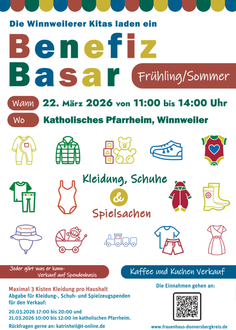 Wir freuen uns auf alle Kleiderspender am Freitag von 17:00 - 20:00 Uhr und am Samstag von 10:00 - 12:00 Uhr im katholischen Pfarrheim in Winnweiler!