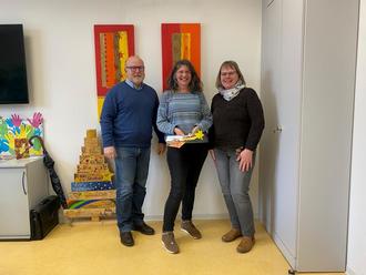 v.li.: Bürgermeister Rudolf Jacob, Erzieherin Petra Franck u. Nadja Glock vom Personalrat