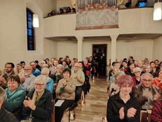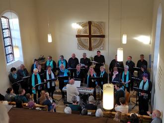 Im zweiten Teil des Konzerts begeisterte der Chor u.a. mit dem kraftvollen "Earth Song" von Michael Jackson und dem emotionalen "Never Enough" aus dem Musical "The Greatest Showman". Den fulminanten Abschluss bildete das mitreißende "Oh Happy Day" mit Solist Ludger Grünewald, der das Publikum in unnachahmlicher Weise zum Mitsingen animierte. Presbyterin Maria Krieger bedankte sich beim Chor und der Chorleitung für den gelungen Abend und überraschte die Sängerinnen und Sänger mit einem kleinen Geschenk und einem handgeschriebenen Psalmvers.