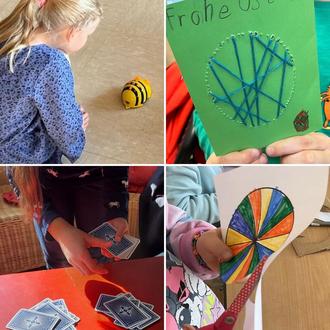 Im Workshop „Eins, zwei, drei, bist du dabei? Wir malen uns ein Osterei!“ wurden ausgeblasene Eier liebevoll bemalt. Ruhiger ging es beim Kinderyoga zu, wo Entspannung im Mittelpunkt stand. Tierisch lustig wurde es beim Basteln eines „Gackerhuhns“, das mit einfachen Materialien zum Leben erweckt wurde.