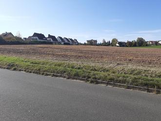 Blick von der Alsenzstraße (K10) Höhe der ehemaligen Tankstelle Engel auf das Neubaugebiet „Elf Morgen“; links und im Hintergrund die Bebauung der Ring- und der Alsenbrücker Straße