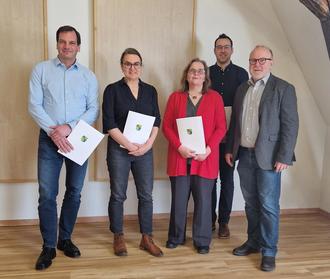 Von links: Peter Stabel, Ina Kirschbaum, Gertrud Cramme, Dominik Lothschütz und Bürgermeister Rudolf Jacob