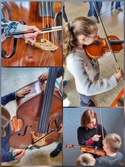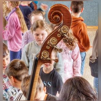 Katrin Lerchbacher und Johannes Pardall brachten zwischen den einzelnen Musikstücken immer wieder spannende, lehrreiche und humorvolle Erzählungen rund um die Welt der Orchesterinstrumente ein, die das Publikum unterhielten und zu einem rundum gelungenen Hörerlebnis beitrugen. Nun wissen die Kinder, warum auch Hunde die Saiten eines Streichinstrumentes mögen, dass Pferde einen Teil ihrer Mähne für den Bogen zur Verfügung stellen und das Land Brasilien seinen Namen von dem Holz erhalten hat, aus dem auch die Bögen der Instrumente hergestellt werden. Nach dem Konzert luden die Musiker alle Kinder zum Ausprobieren der Instrumente ein und so manches Kind entdeckte hier seine ganz eigene Liebe zur Violine, der Viola, dem Cello, dem Bass oder der Querflöte. Eifrig und konzentriert entlockten die jungen Musiker den Instrumenten helle und zarte, tiefe und dunkle Töne und spürten die wunderbare Kraft der Musik hautnah. Sie freuten sich über das wertschätzende Lob der Musiker und Lehrkräfte, die den kleinen Künstlern mit großer Freude zuhörten.