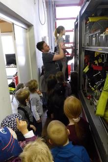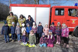 Am 4. April 2023 besuchten die Vorschulkinder der Kita „Sternenhimmel“ die Feuerwehr in Imsbach. Dort angekommen, erklärten uns Ute Korn, Sebastian Hofstadt und Laura Scheib, was man alles in einem Feuerwehrauto findet wie zum Beispiel eine Feuerlöschpumpe, Atemluftflaschen, Strahler oder eine Axt. Anschließend durften die Kinder Gegenstände, die unter einer Decke lagen, erraten. Dort waren eine Feuerwehrjacke, feuerfeste Stiefel, Schläuche und ein Schutzhelm versteckt. Danach durften die Kinder selbst einmal in die Feuerwehrkleidung für Kinder schlüpfen. Zum Schluss haben die Kinder erklärt bekommen, was ein Hydrant ist und wie man diesen öffnet. Dann durfte jedes Kind einmal mit dem Schlauch Wasser spritzen. An dieser Stelle möchten wir uns noch einmal recht herzlich bei Ute Korn, Sebastian Hofstadt und Laura Scheib für ihre Zeit und ihr Engagement bedanken.