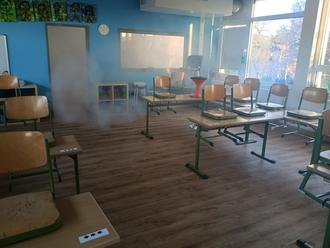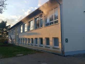 Angenommen wurde ein durch Arbeiten ausgelöster Brand in einem Klassenbereich, in dem auch ein Handwerker vermisst war. Durch offengehaltene Rauchschutztüren konnte der Rauch in den Treppenraum gelangen, was normalerweise (bei sachgemäßem Betrieb) genau durch diese verhindert wird.